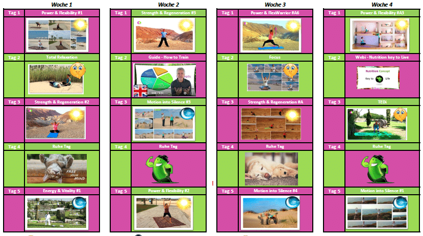 Ein geführtes Wochenprogramm, hilft dir Schritt für Schritt, deinen Körper zu erneuern und deinen Geist zu beruhigen.